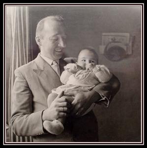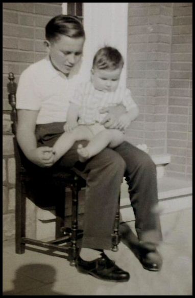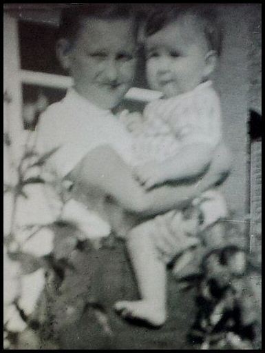 Guy Koekelbergh (ongeveer 1 jaar) op schoot bij zijn grote neef Bob Buenau die toen al ongeveer 11 was in 1957. |
